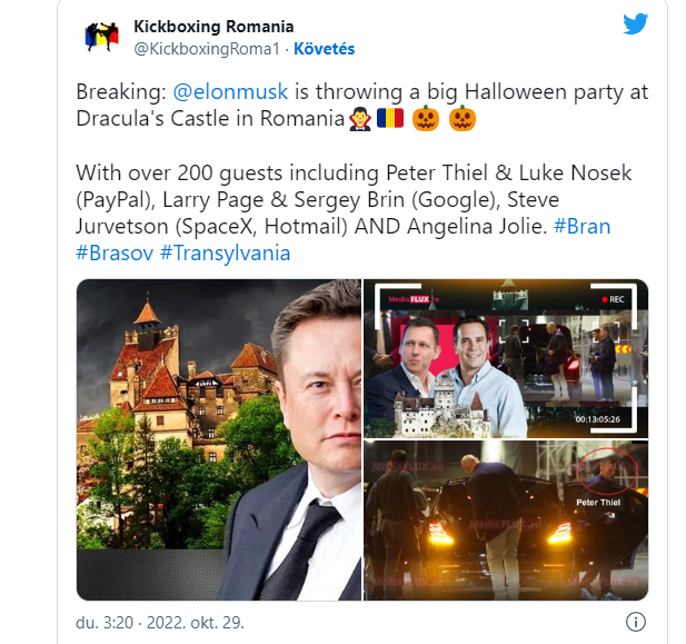 Romániába utazott a világ leggazdagebb embere Elon Musk. A Tesla alapítója kibérelte a törcsvári drakula kastélyt, hogy Halloween tartson milliárdos ismerőseinekés hollywoodi sztároknak. Úgy tudni kb. 40-50 rendkívül fontos embert lát vendégül néhány napra a híres kastélyben.