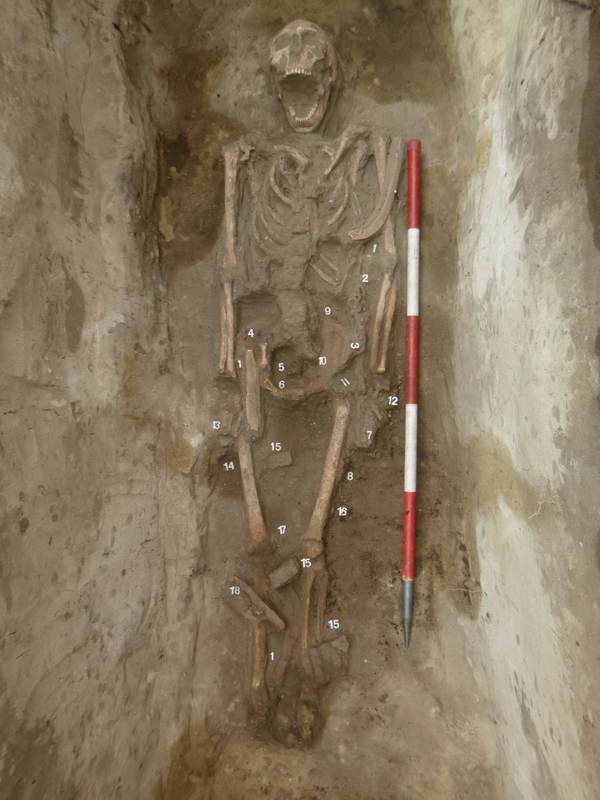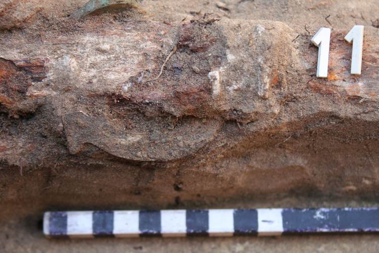 A lábak csontjai között a korszakban nagy értéket képviselő, és ezzel szoros összefüggésben a régészeti leletanyagban viszonylag ritkának mondható lemezpáncél sírba helyezett töredékei kerültek elő. Hasonlóképpen jelentős egy másik temetkezés is, amelyben egy szintén bolygatatlan férfi váz feküdt: a deréktájon elhelyezett övveretek és a medencelapáton feltárt nyílhegyek mellett az elhunyt bal oldalára fektették az ezüstszerelékes hüvelyében elhelyezett szablyáját. A minden bizonnyal a közösség előkelő tagjának számító, rangjelző melléklettel túlvilági útra indított személy a teljes avar társadalomban is számottevő személy lehetett” – mondta Farkas Zoltán, az ásatás vezetője.