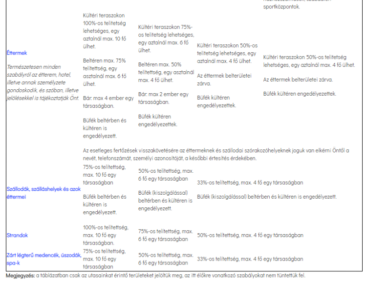 Szállodákban: kötelező a távolságtartás, a beltéri kapacitások minden esetben jelölve vannak.