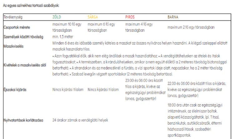 8. Az egyes színekhez tartozó szabályok:
