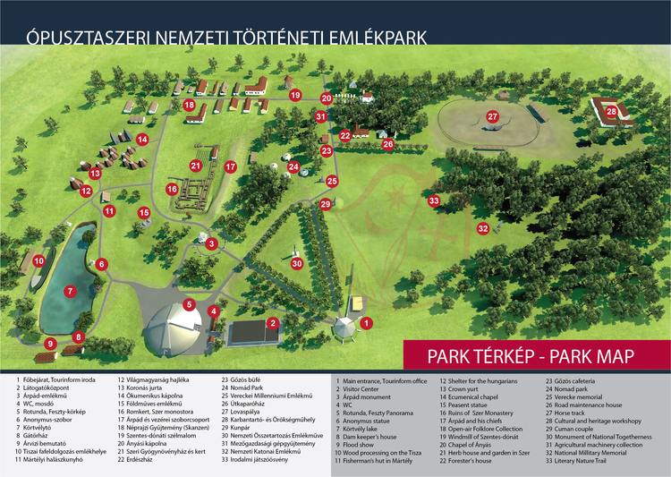 - Cím: 6767 Ópusztaszer, Szoborkert 68. Parkolás az Emlékpark területén biztosított.