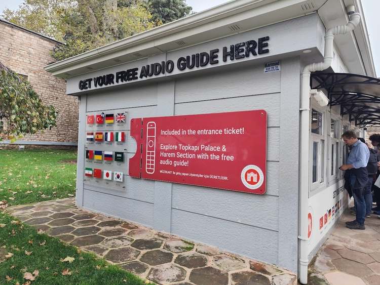 TIPP: A Topkapi palota belépői sok más látnivalóhoz hasonlóan viszonylag drágák. Az első udvarba térítés mentesen lehet bejutni egy ellenőrző kapun át, ott vannak a jegypénztárak. Érdemes olyan kombijegyet vásárolni, ami tartalmazza a hárem belépőjét is, ami az egyik fő látnivaló. (kb.50 Euro/fő a belépő ára, diákoknak adnak kedvezményt, de csak a nemzetközi diákigazolványt fogadják el!) Rögtön a pénztár mellett lehet ingyenesen 18 nyelven audio guide-ot kapni, amiért mindössze egy fényképes igazolványt kell leadni a visszavételig. (sajnos nincs magyar nyelvű szöveg a készüléken.)