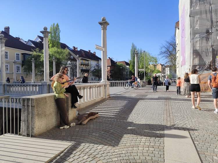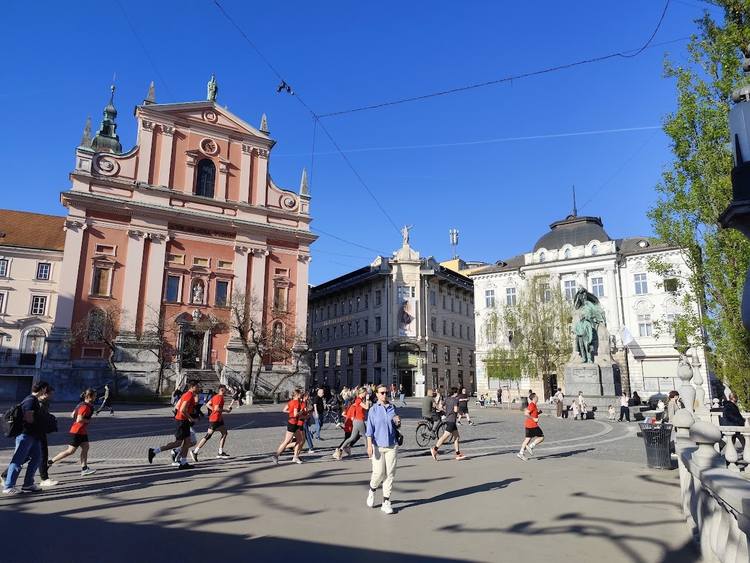 A városnézést érdemes a Prešeren téren kezdeni. Ez Ljubljana egyik legfotogénebb pontja: itt találjuk a rózsaszín homlokzatú ferences templomot, France Prešeren költő szobrát és a híres Hármas hidat, Jože Plečnik építész egyik legismertebb alkotását. A Ljubljanica folyó két partját összekötő hidak és sétányok adják a város igazi ritmusát: kávézók, teraszok, kis boltok és lassan hömpölygő turistahajók kísérik az utat.