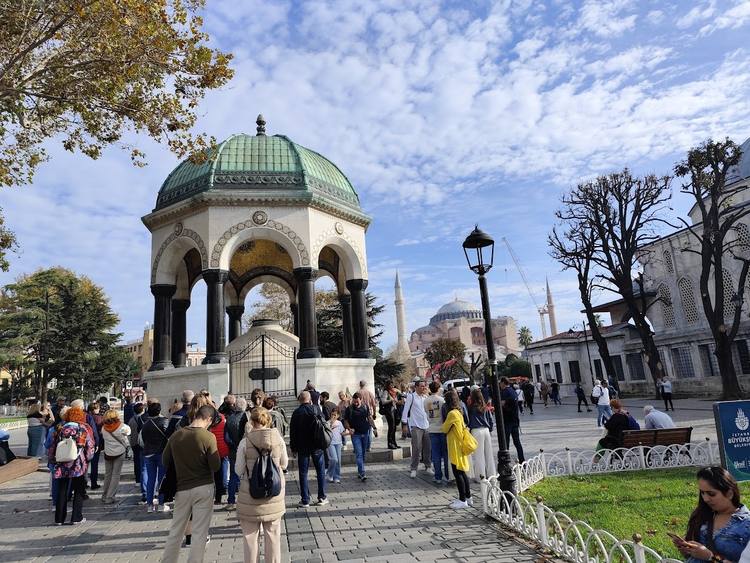 A neobizánci stílusú kút Németország és Törökország barátságát szimbolizálja, és a helyiek kedvelt találkozóhelye.
