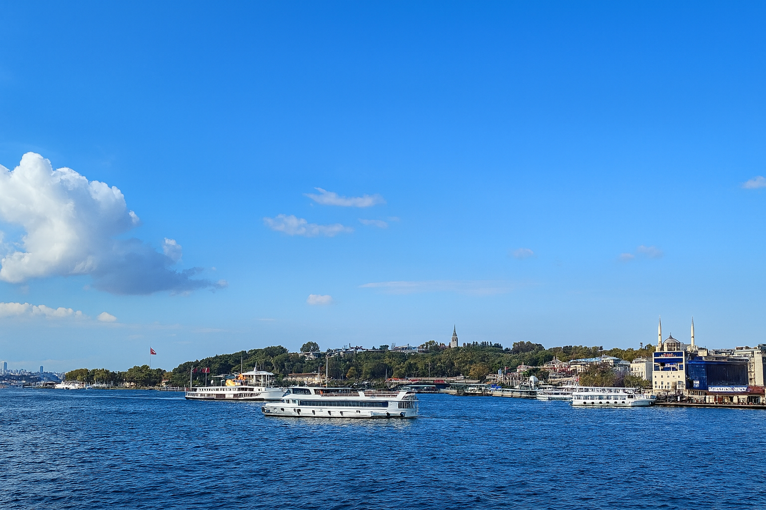 A legtöbb hajókirándulás a kétszintes Galata-hídnál kezdődik, melynek alsó szintje tele van különféle halételeket kínáló éttermekkel. Külön érdekesség megtekinteni a híd melletti halpiacot, ahol az árusok hangos kiabálással hirdetik frissen fogott portékáikat.