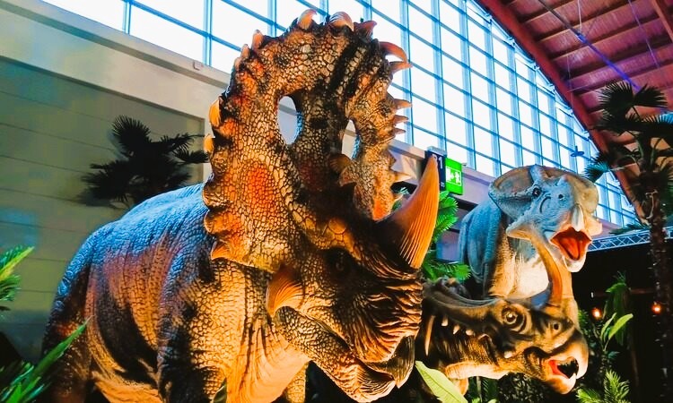 A „Dinoszauruszok Királyságának” tehát semmi köze egy száraz múzeumlátogatáshoz vagy a legfrissebb kutatási eredmények bemutatásához. Itt kifejezetten a hollywoodi filmekből ismert dinoszauruszokat idézik meg – látványos, teátrális formában. A hanghatások az egész csarnokot betöltik. A Tyrannosaurus Rex legnagyobb modellje különösen lenyűgöző: tíz méter magas, mellette pedig egy teherautó-modell áll, amely szinte játéknak tűnik – ennél szemléletesebb módon nehéz lenne megmutatni az arányokat. S őszintén? Ennek tükrében én nem bánom, hogy a T-rexek és a Velociraptorok már rég kihaltak…